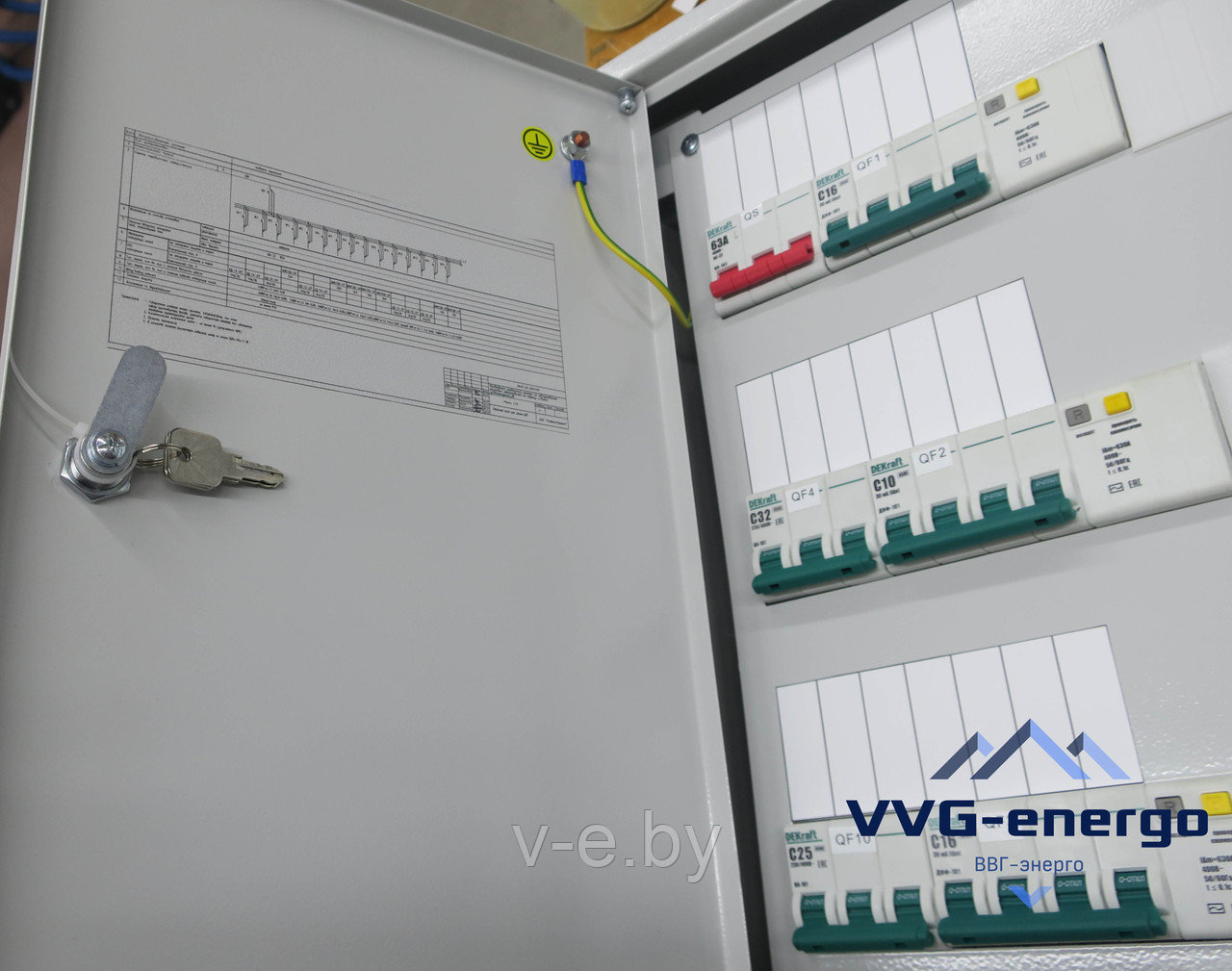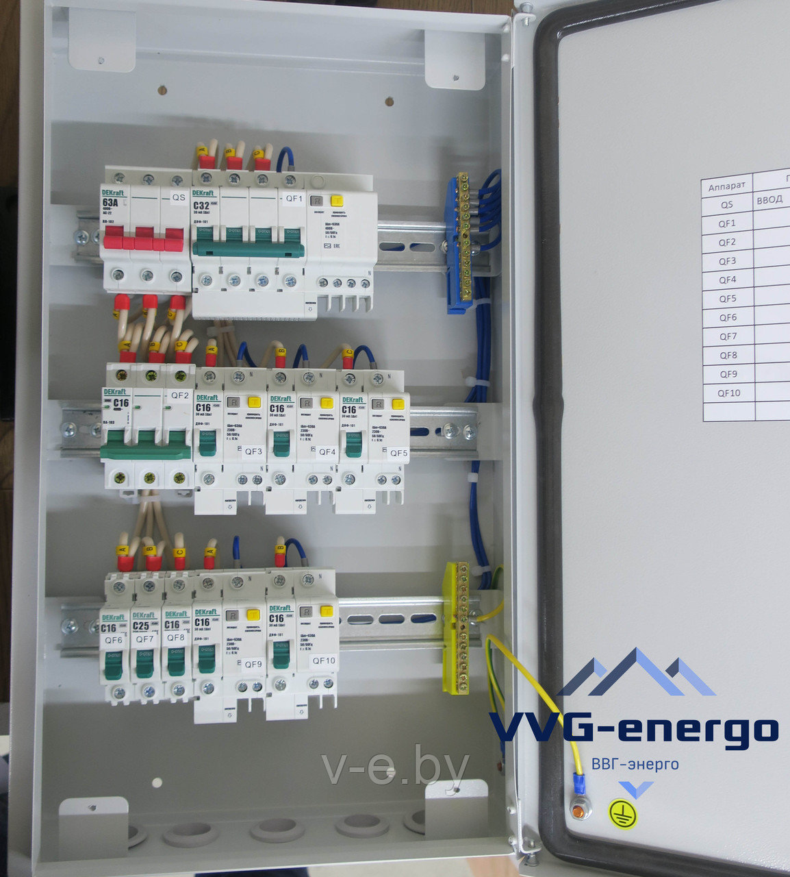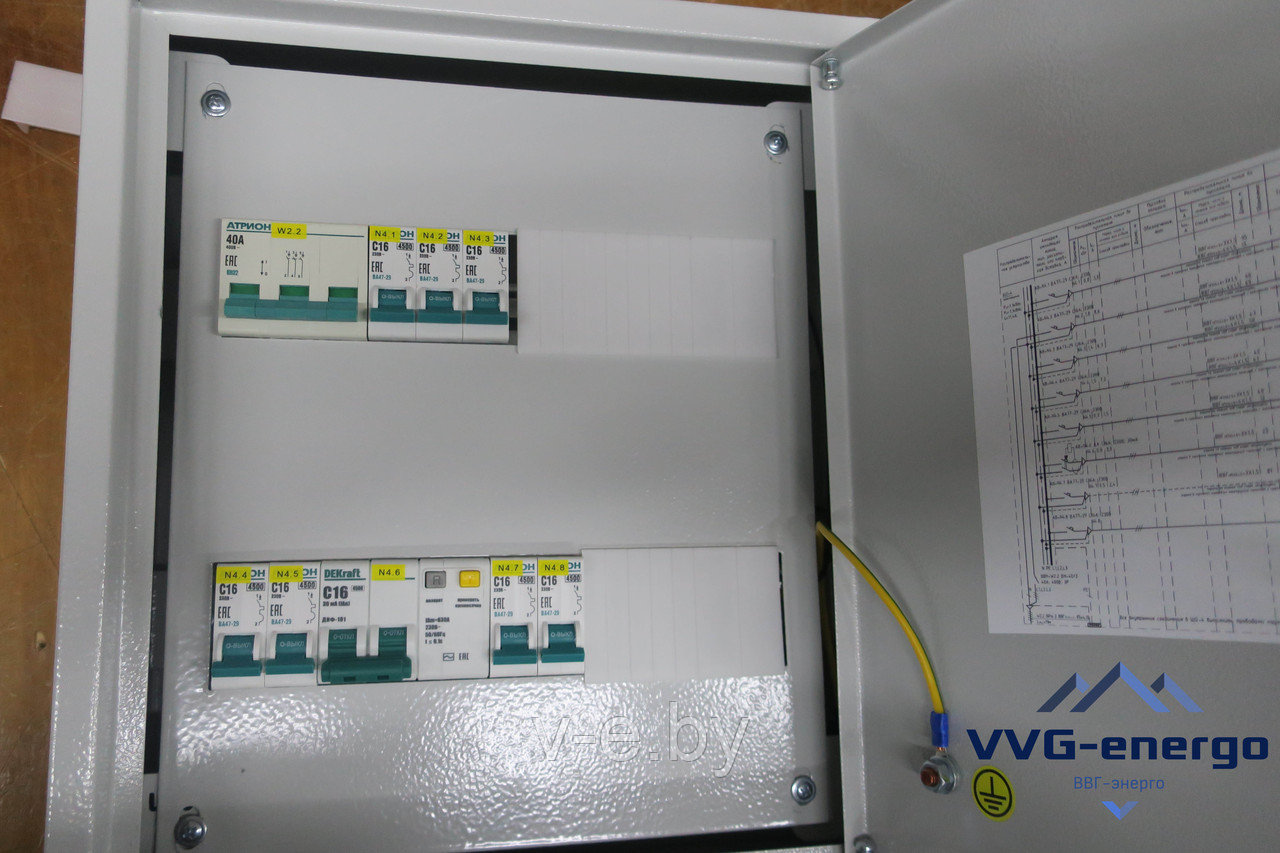 Щиток ЩОМ-12-IP44 У3 ТУ BY 193538516.001-2021, вводной 63 А, линейные 3×6,3 А +3×16 А.